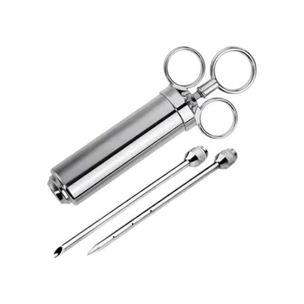 - Diseño especial con tres agujas de condimento, una con agujeros laterales para adobos líquidos, una aguja con gran agujero final para ajo picado, cebolla, sólidos y otra aguja corta para el pollo. La Jeringa es perfecta para intensificar el sabor del cerdo, pollo, pavo, cordero, ganso, pato y mucho más.