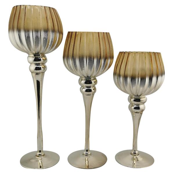 Juego 3 Portavelas 30/35/40Cm Shiny Glam Santini