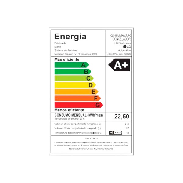 | Capacidad Refrigerador (lt): | 248 litros |